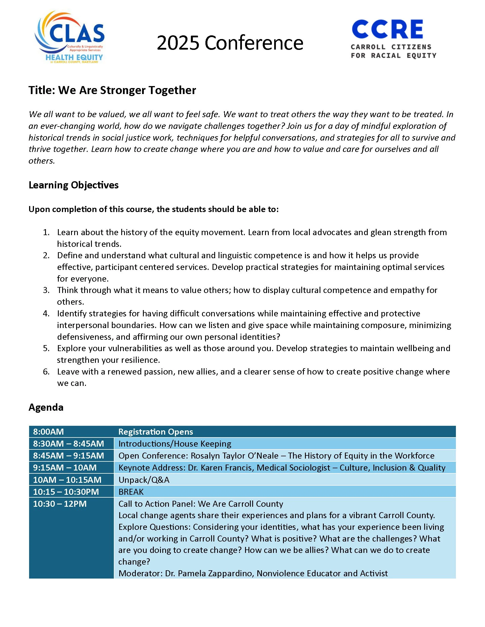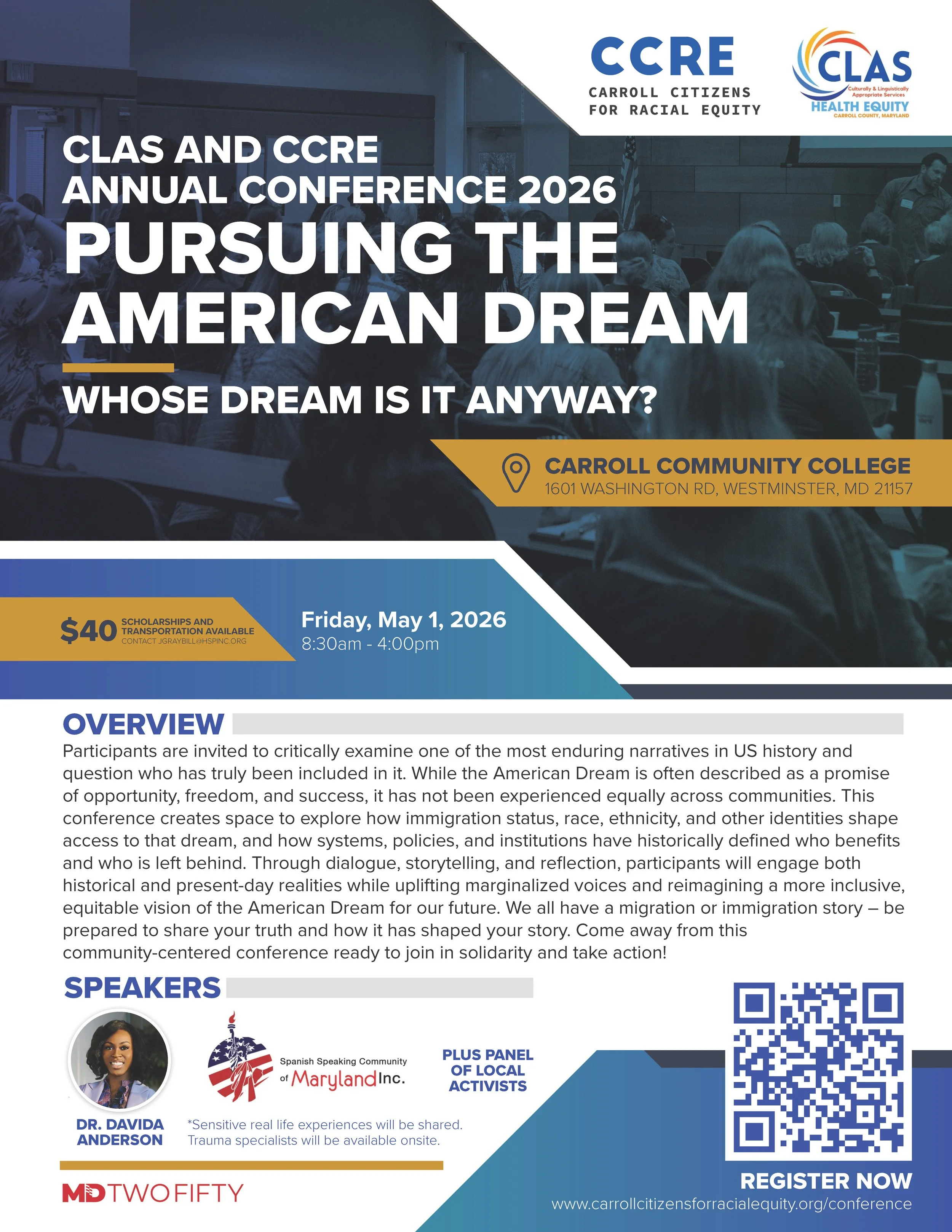 At the CCRE Annual Conference, we bring the community together to explore and learn about timely issues related to race and equity in Carroll County and the U.S. The conferences consist of presentations, panel discussions, and group discussions (or “break-out” rooms).